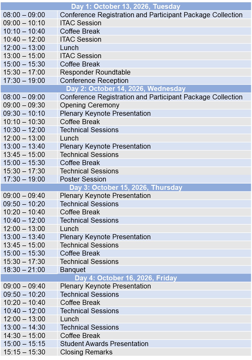 Preliminary Conference Schedule